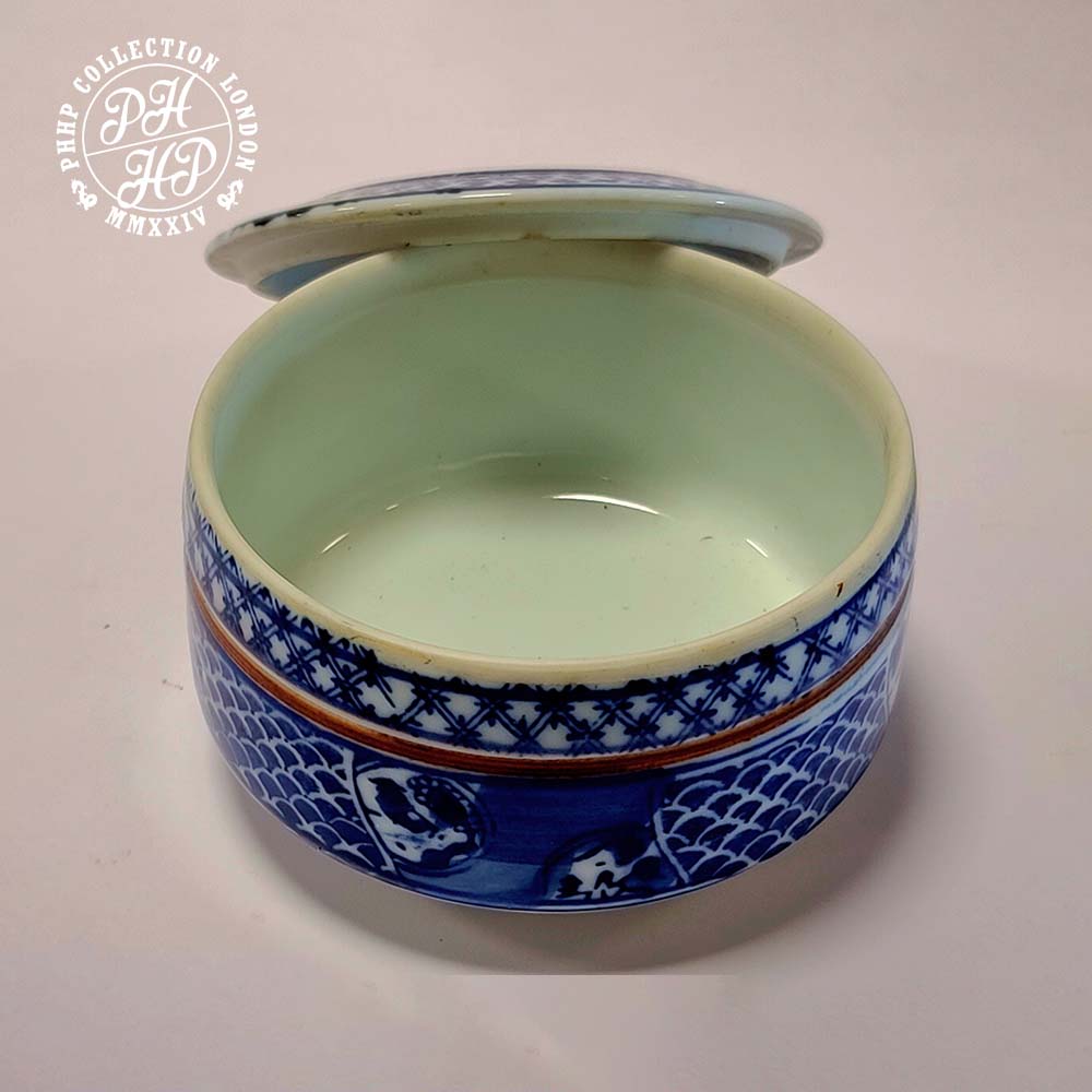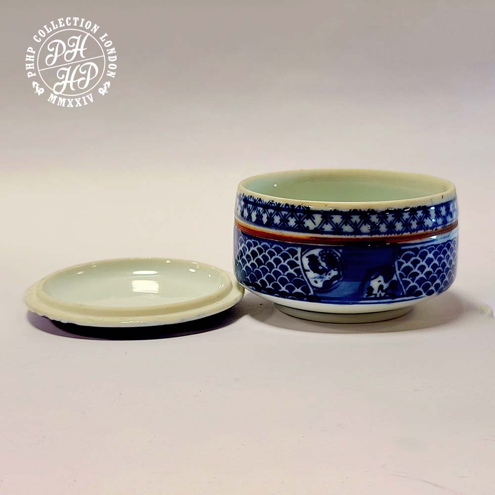 This blue & hand underglaze porcelain is considered to be an art deco, highest quality production of the Edo period porcelain. This EDO period (1680-1700) Kutani has deep blue cobalt under glazed as an example of the highest quality Japanese porcelains produced in the early seventeenth-eighteenth century Japan. Extremely rare and sought after. Ideal for collectors or Museums around the world.