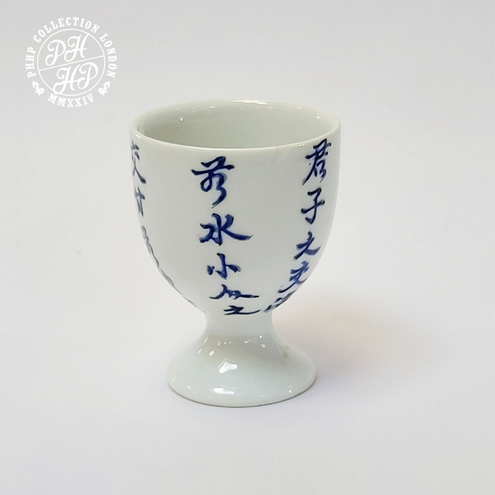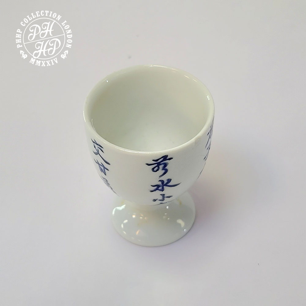 It is one rare type of blue & white cobalt underglaze porcelain chalice. The writings in traditional Chinese characters depict the poetry written by the Emperor Quianglong (1711-1799). He was also known as Emperor Gaozhong of Qing, who wrote poetry almost daily aside from his imperial duty, This porcelain Chalice of wine cup is said to have been created to celebrate his penchants for writing poetry. This piece is a rare find for it's size and purpose it was manufactured for.