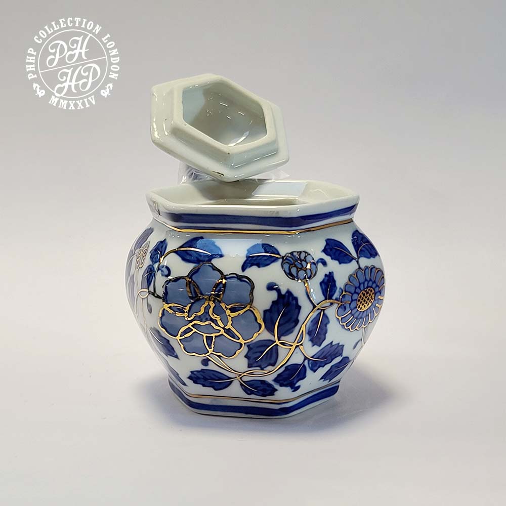 This hand painted in cobalt blue in underglaze porcelain is an innovative styles introduced in the early republican period Chinese porcelain. This ginger jar on with lid, shows the generosity of gold gilding trimmed with black enamel. Excellent quality for its decor and rarity as the collective porcelain piece of 20th century porcelain production.