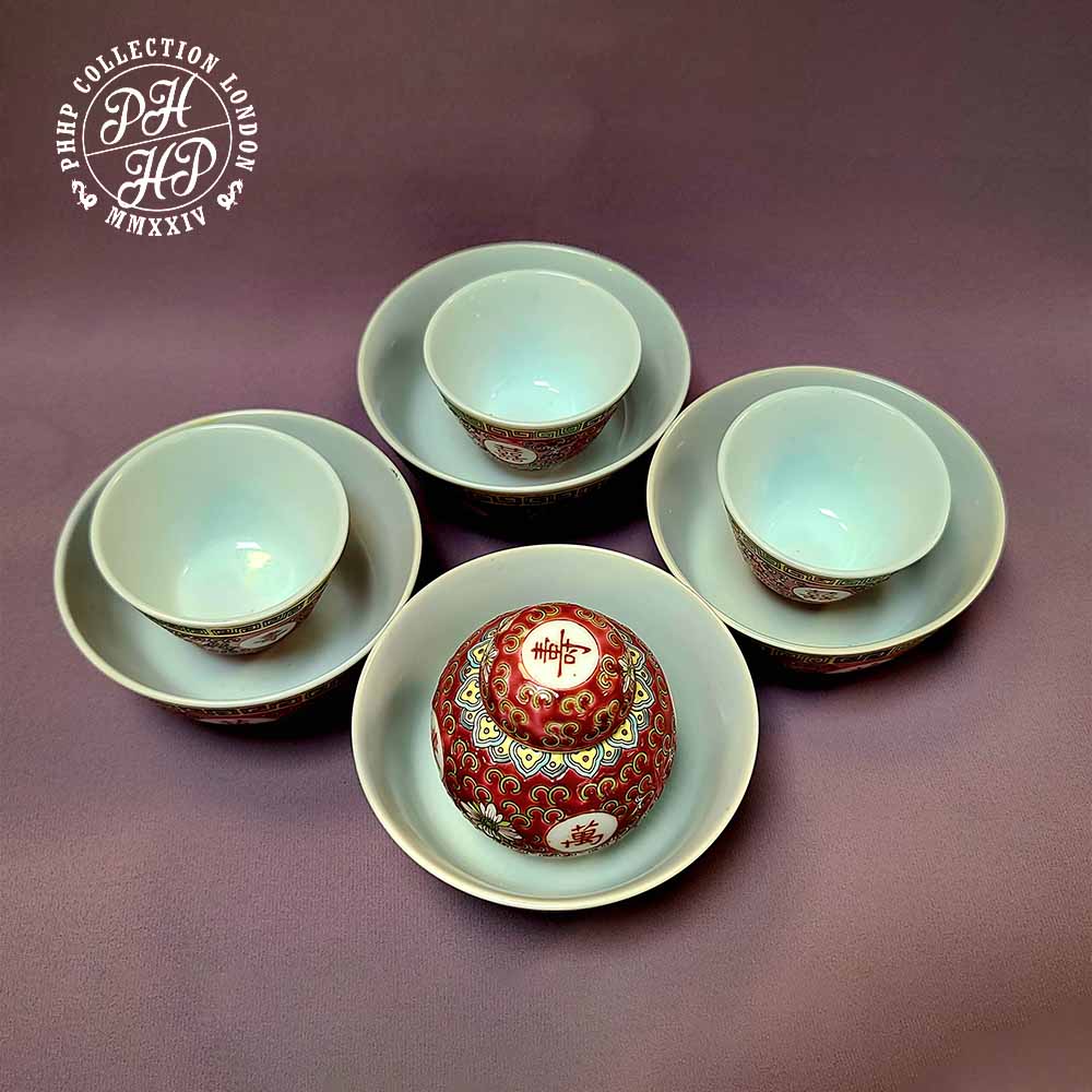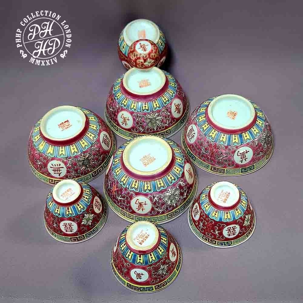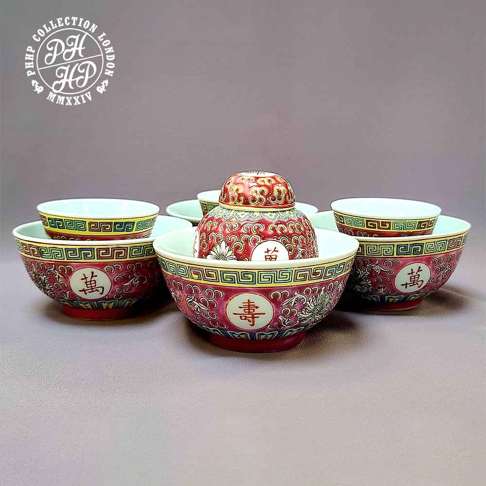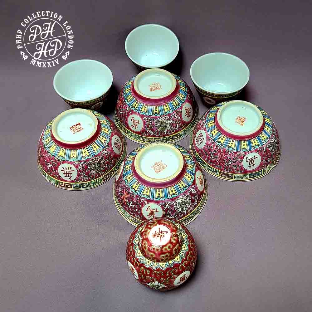 These bowls, jars and cups are coveted pieces baluster and red and pink in family verte styles of painting and production. Produced during the Republican period China. These pieces are collected from different places at different times over period of 3 years. They now form a set as unusual en-devour. It is inspiring and truly historical for it's collection coming together at one place.