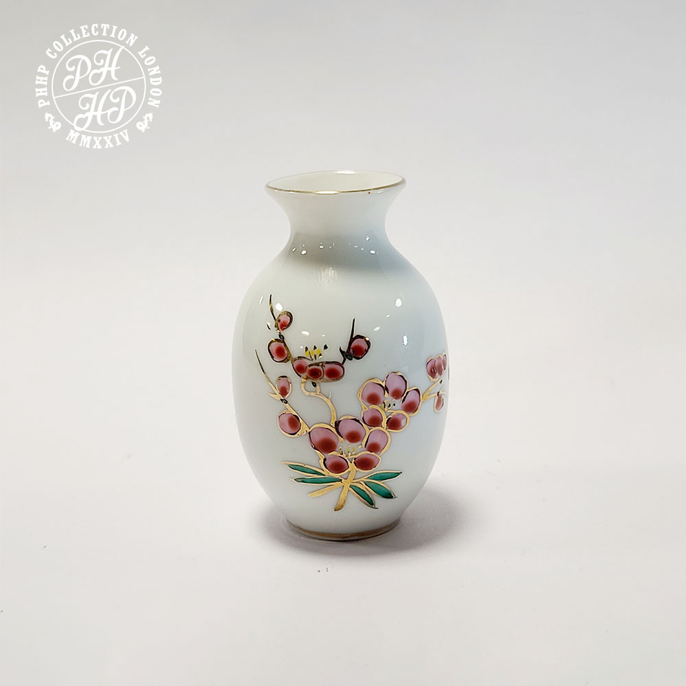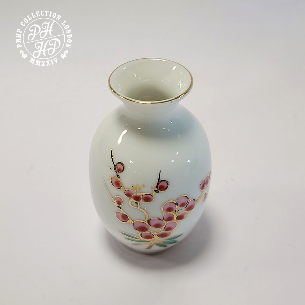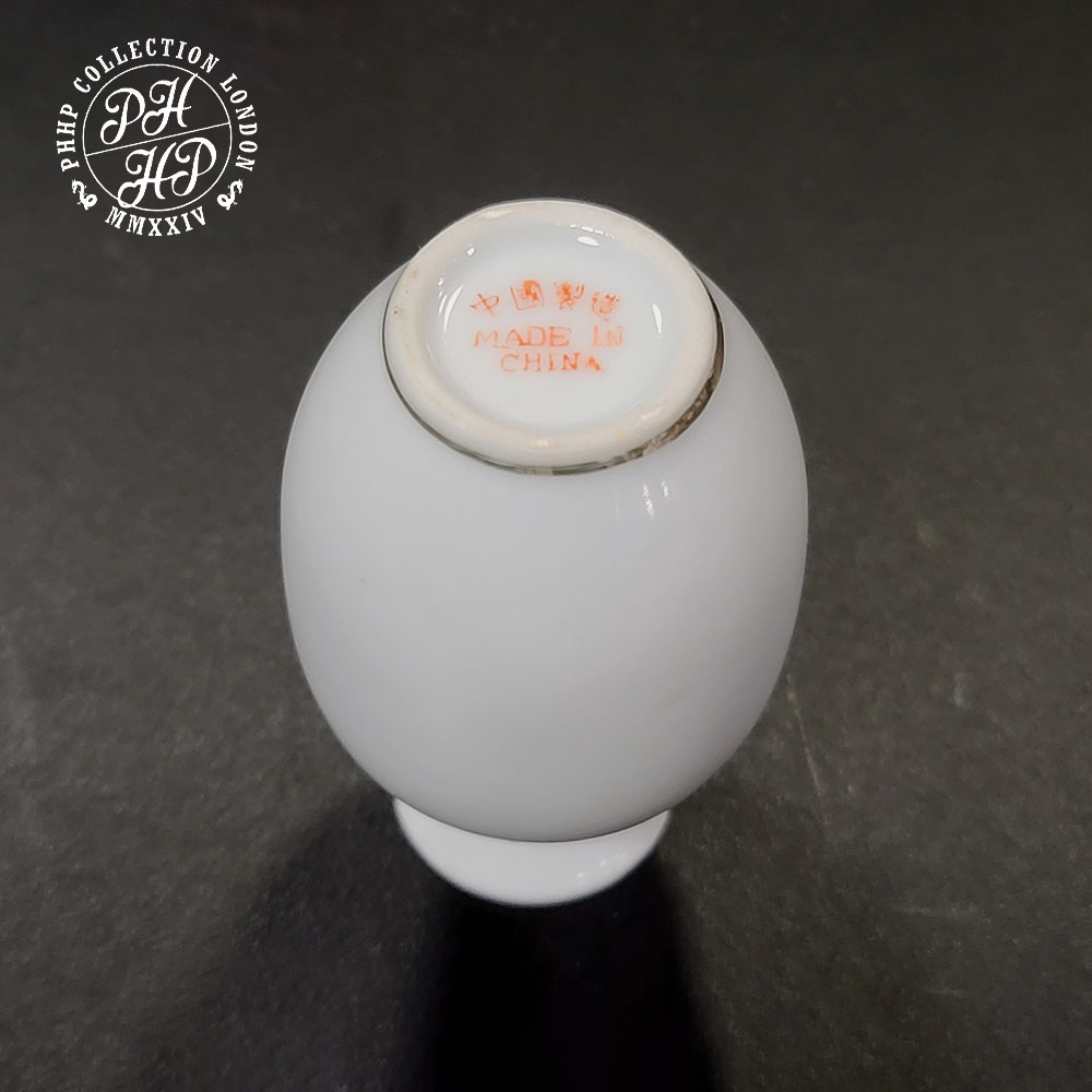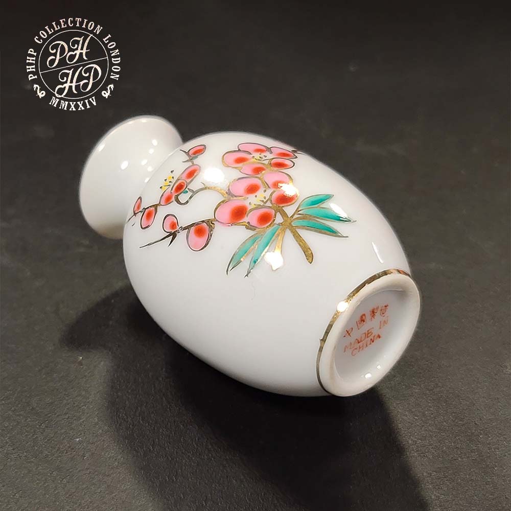 This distinctive piece of Porcelain is a Famille Rose variety. It’s distinct shape and size states that it is made for the purpose of ‘Display’ and ‘Example’ only. The fineness of the virtue and style of the ‘Pink’ under glaze enamel, with the Peach flowers drawing and gold gilding show the key characteristic of the finest quality Republican period porcelain production. This tiny vase dates to 1930s and most probably fired at the Liling Kilns, situated in the Hunan province of China.